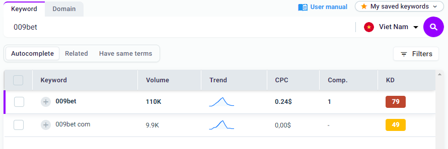 Còn theo như thống kê của semrush cho thấy được rằng có tận 110.000 lượt tìm kiếm 009bet trên khắp lãnh thổ Việt Nam.